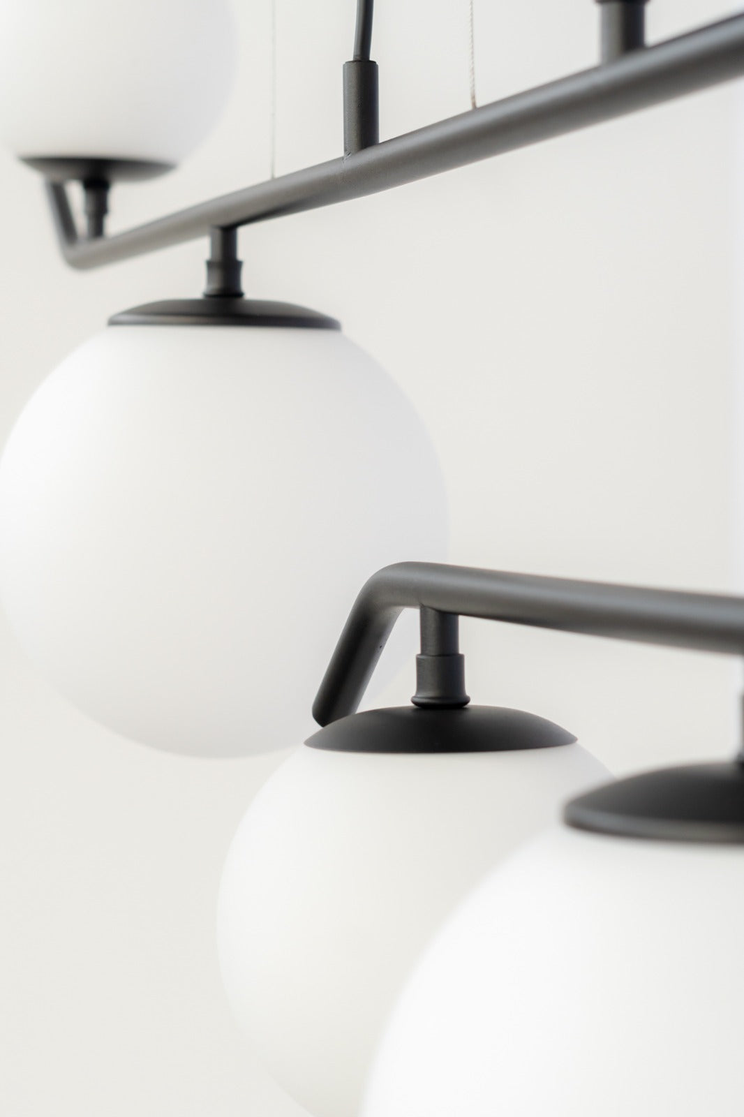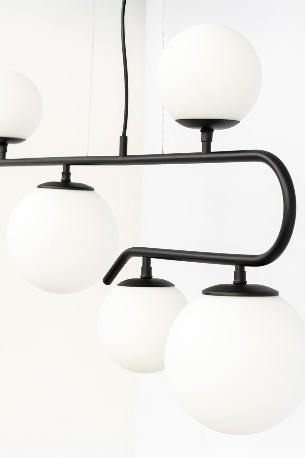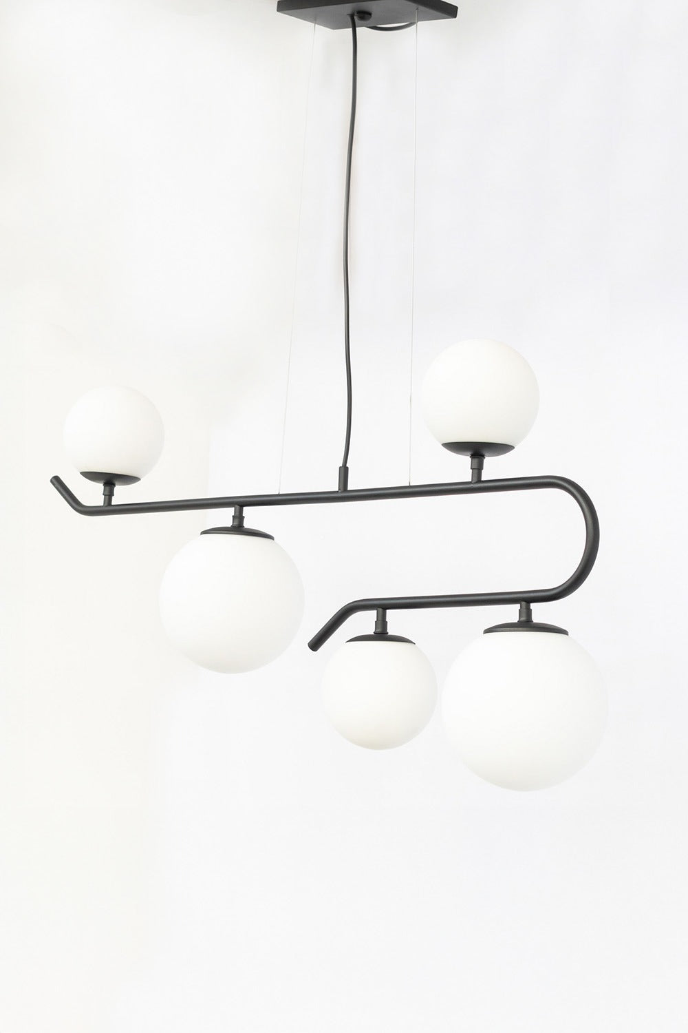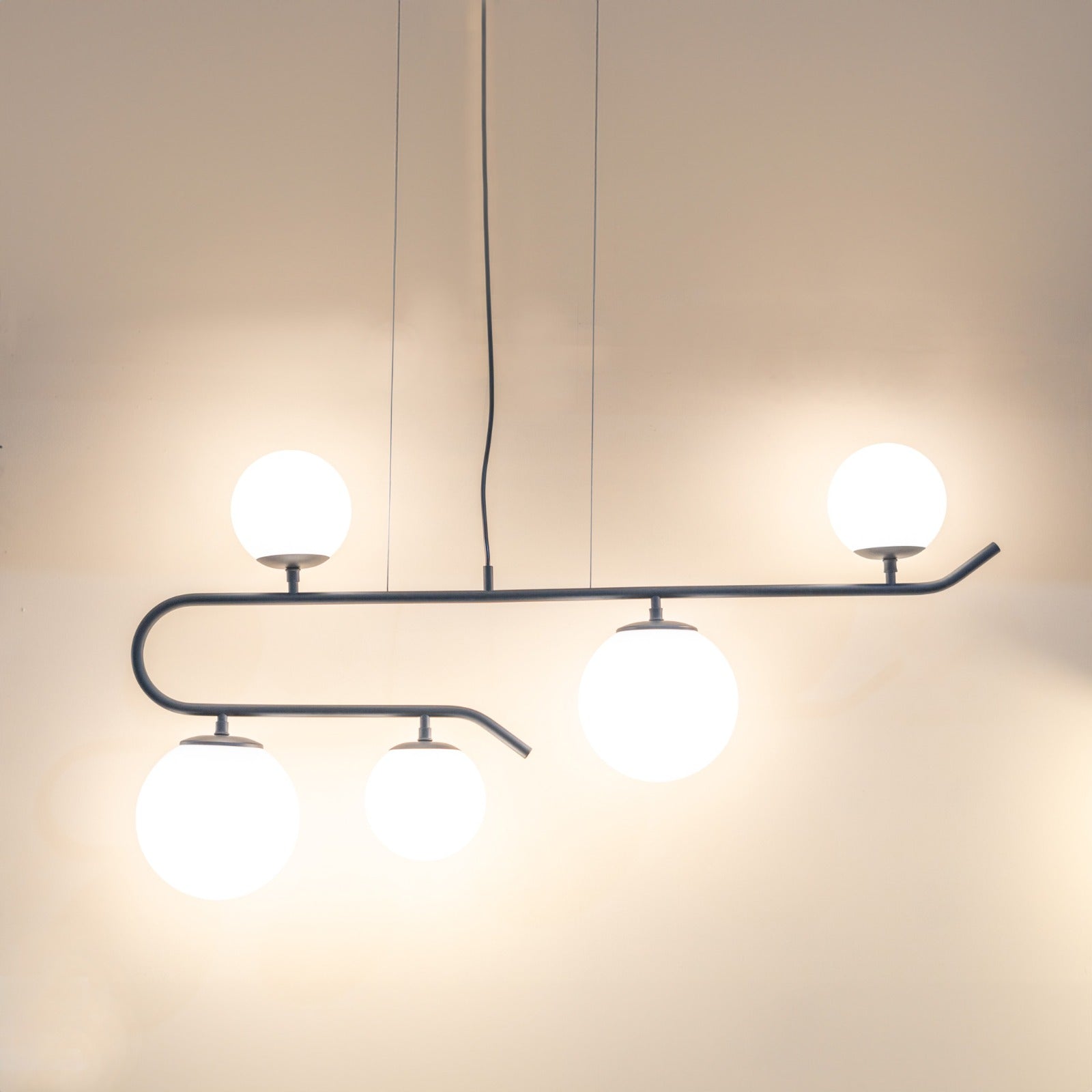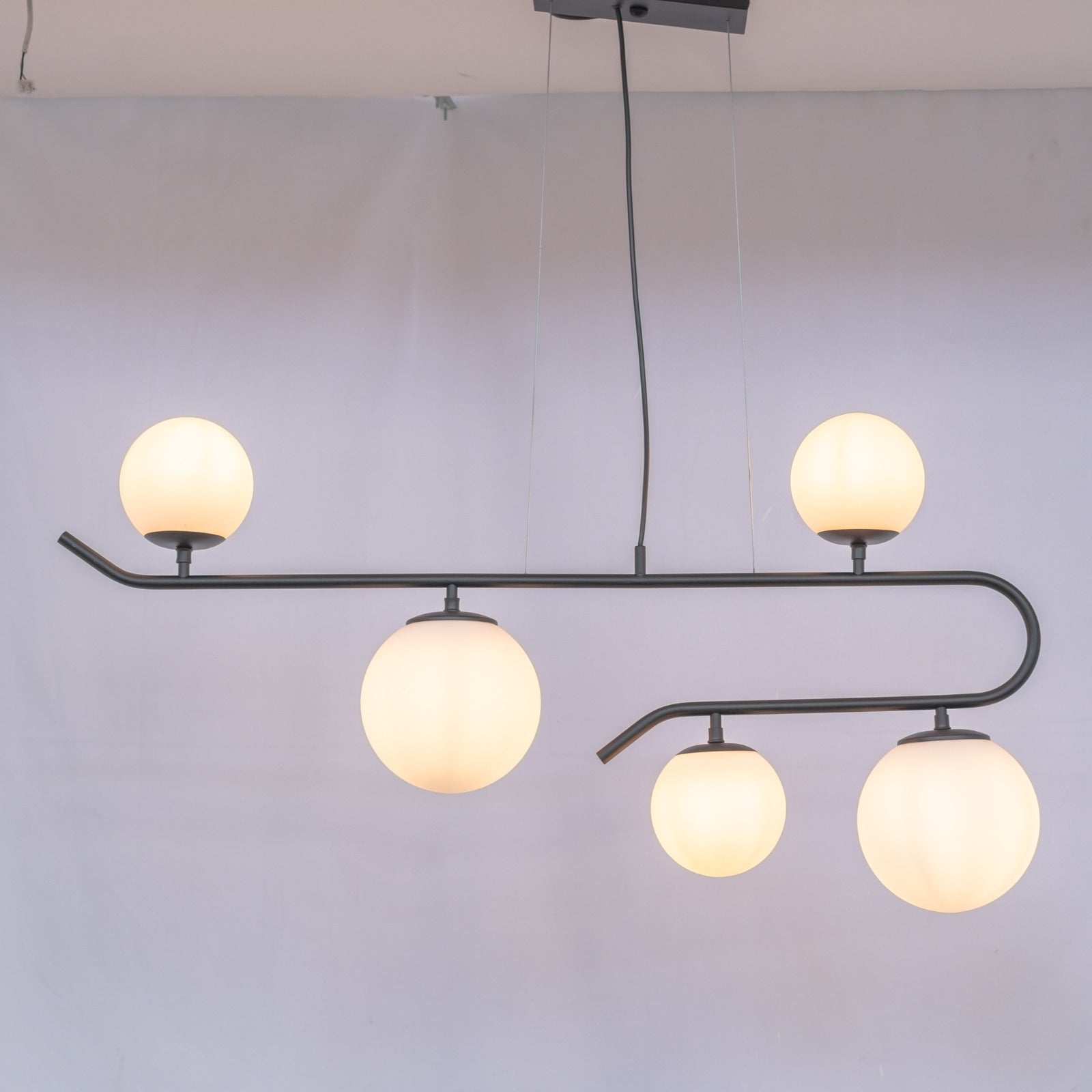 Lámpara colgante de 5 luces, diseñada en metal y bombas en tono pastel.
